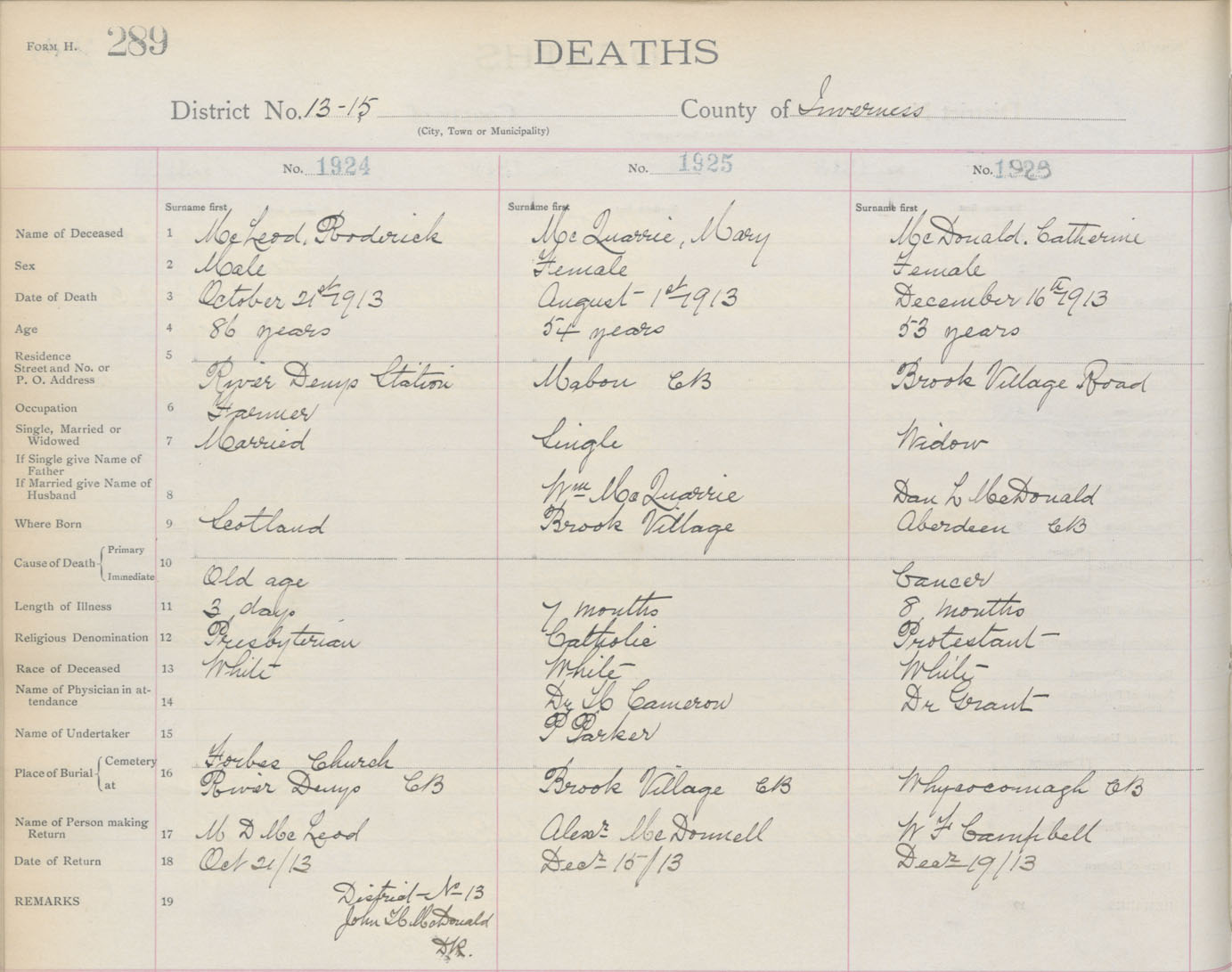 Death Registration: Year: 1913 book: 11 page: 289 number: 1924