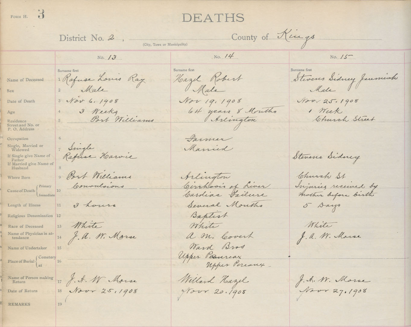Death Registration: Year: 1908 book: 12 page: 3 number: 13