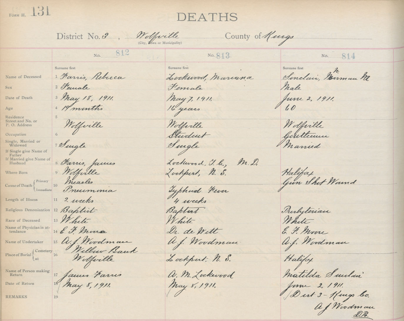 Death Registration: Year: 1911 book: 12 page: 131 number: 814