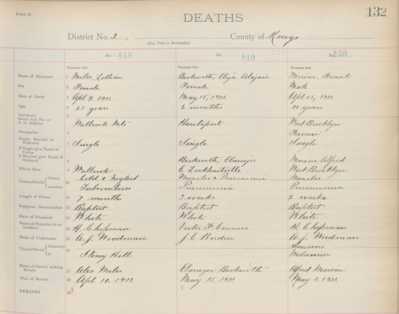 Death Registration: Year: 1911 book: 12 page: 132 number: 820