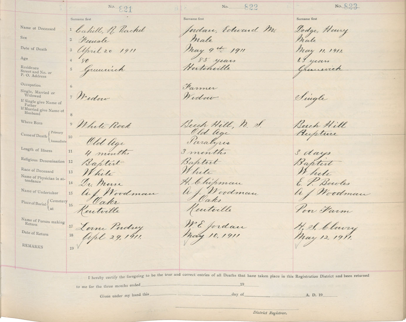 Death Registration: Year: 1911 book: 12 page: 132 number: 823