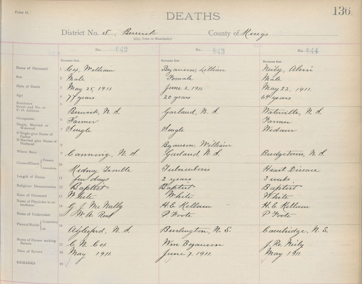 Death Registration: Year: 1911 book: 12 page: 136 number: 844