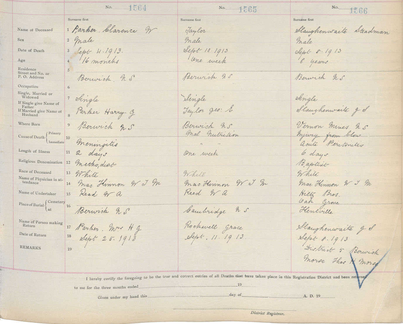 Male Death Registration: Year: 1913 book: 12 page: 256 number: 1566