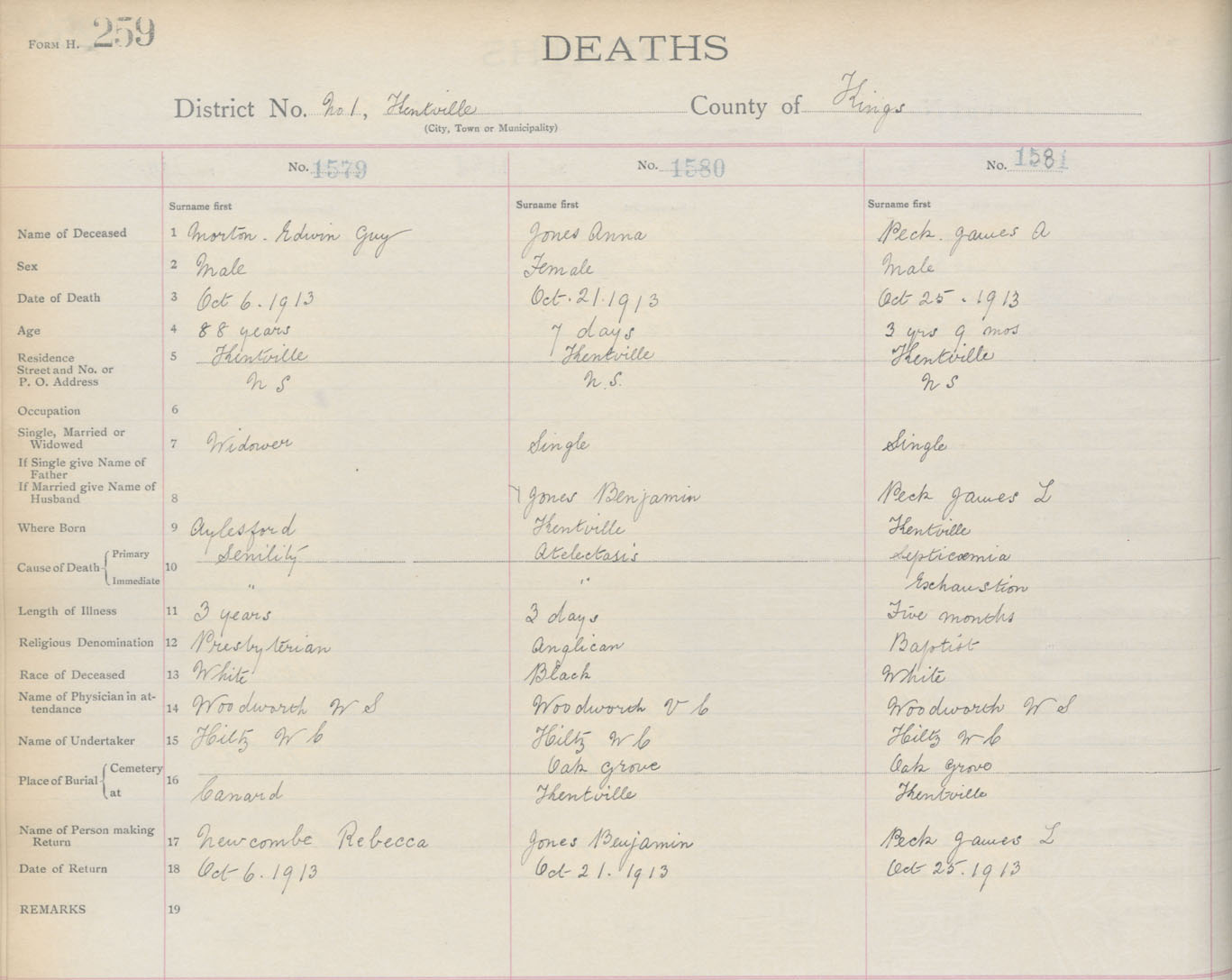 Male Death Registration: Year: 1913 book: 12 page: 259 number: 1581