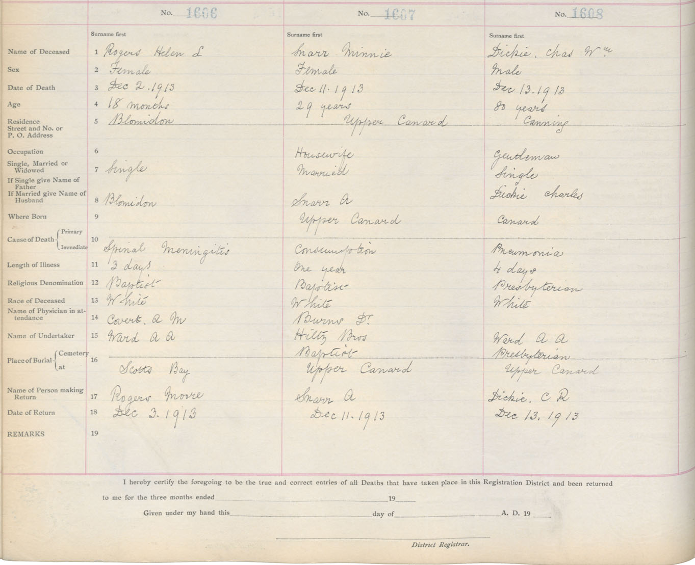 Male Death Registration: Year: 1913 book: 12 page: 263 number: 1608