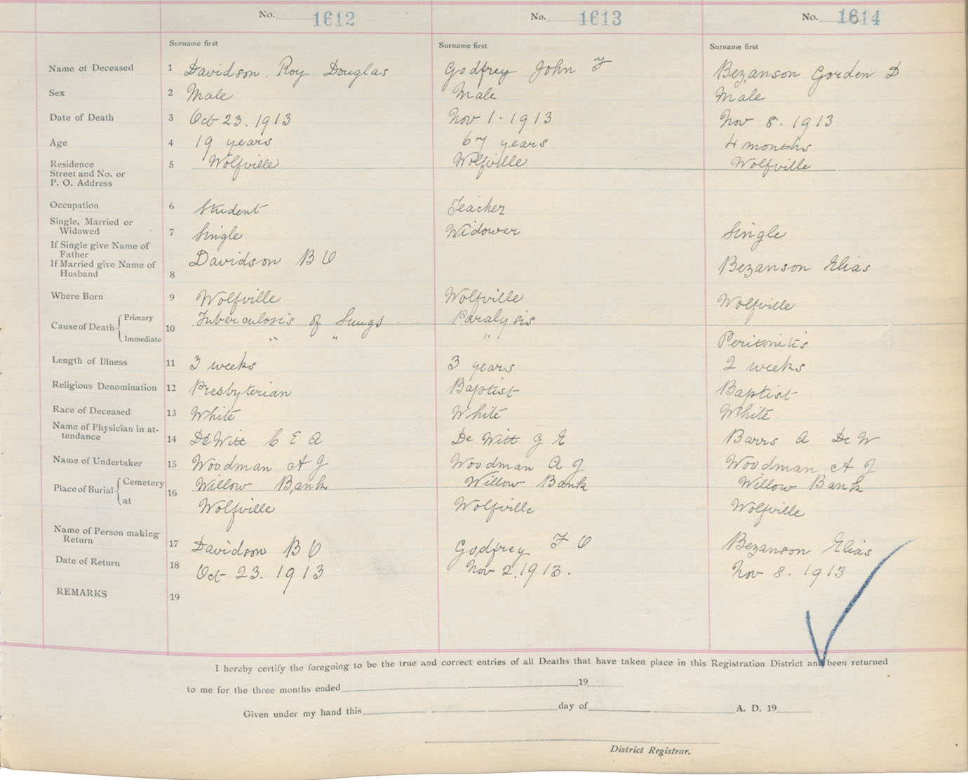 Male Death Registration: Year: 1913 book: 12 page: 264 number: 1614