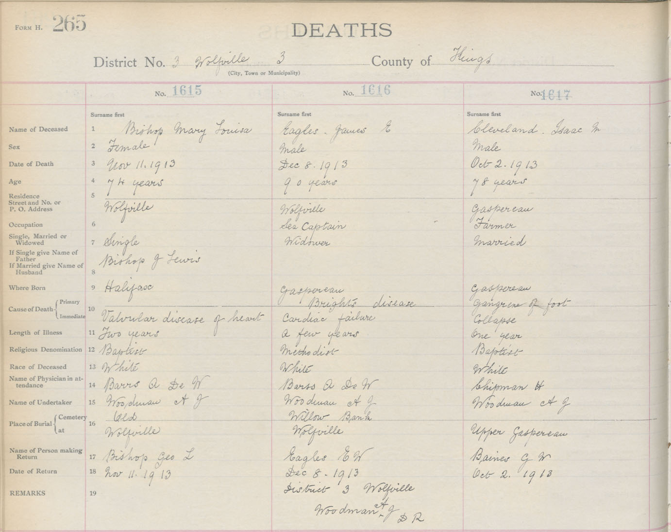 Male Death Registration: Year: 1913 book: 12 page: 265 number: 1617