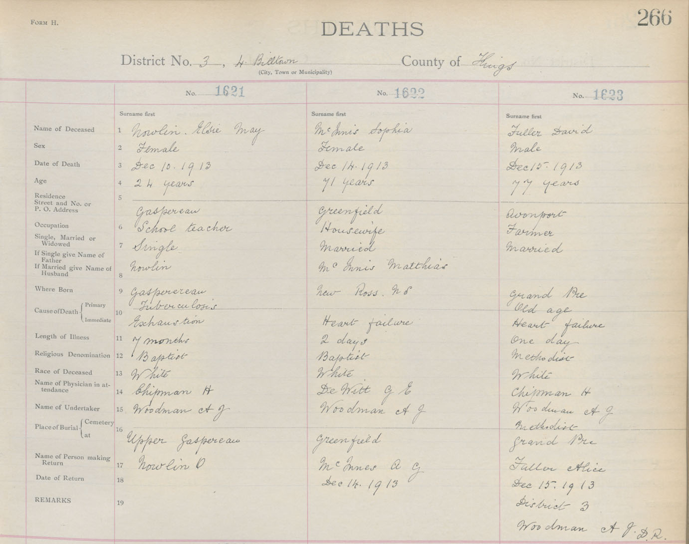 Male Death Registration: Year: 1913 book: 12 page: 266 number: 1623