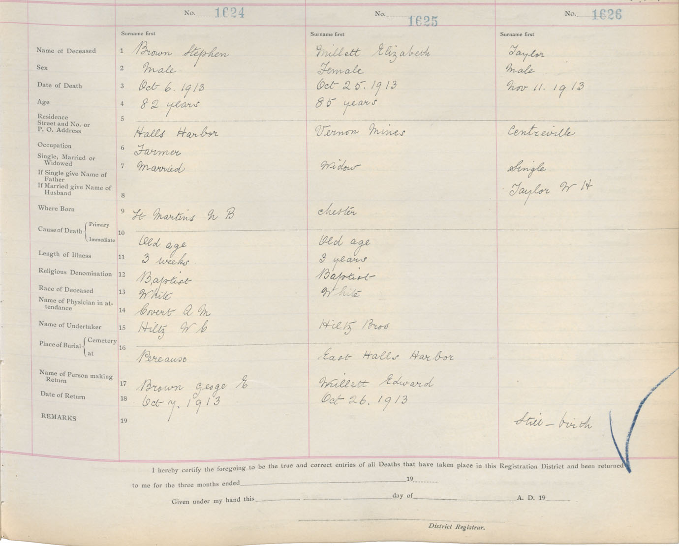 Male Death Registration: Year: 1913 book: 12 page: 266 number: 1626