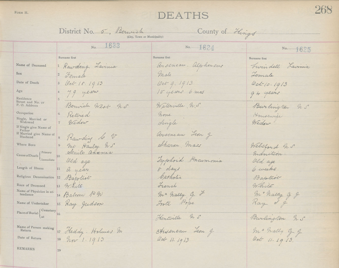 Female Death Registration: Year: 1913 book: 12 page: 268 number: 1635