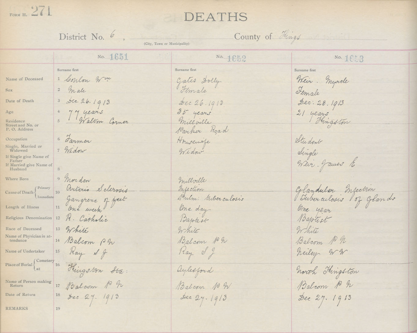 Female Death Registration: Year: 1913 book: 12 page: 271 number: 1653