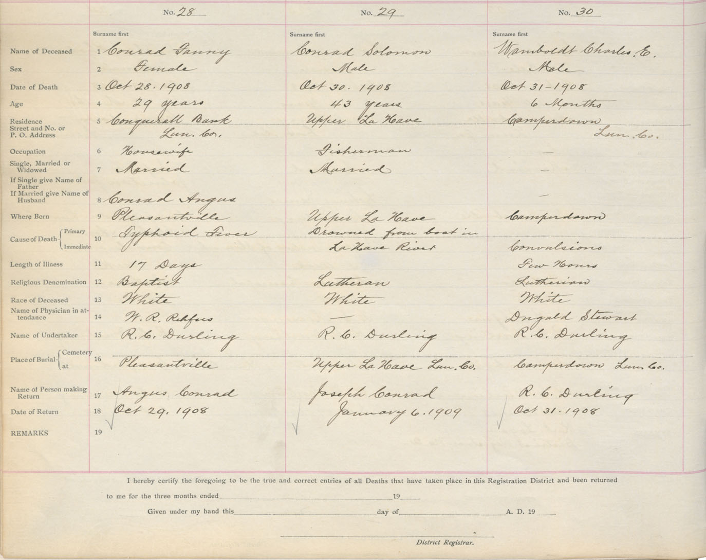 Death Registration: Year: 1908 book: 13 page: 5 number: 30