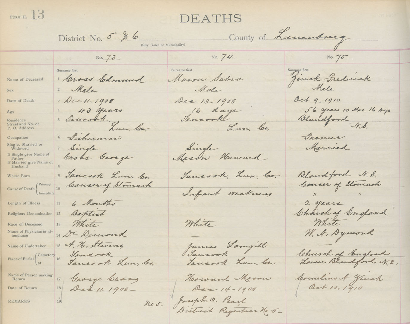 Death Registration: Year: 1908 book: 13 page: 13 number: 73