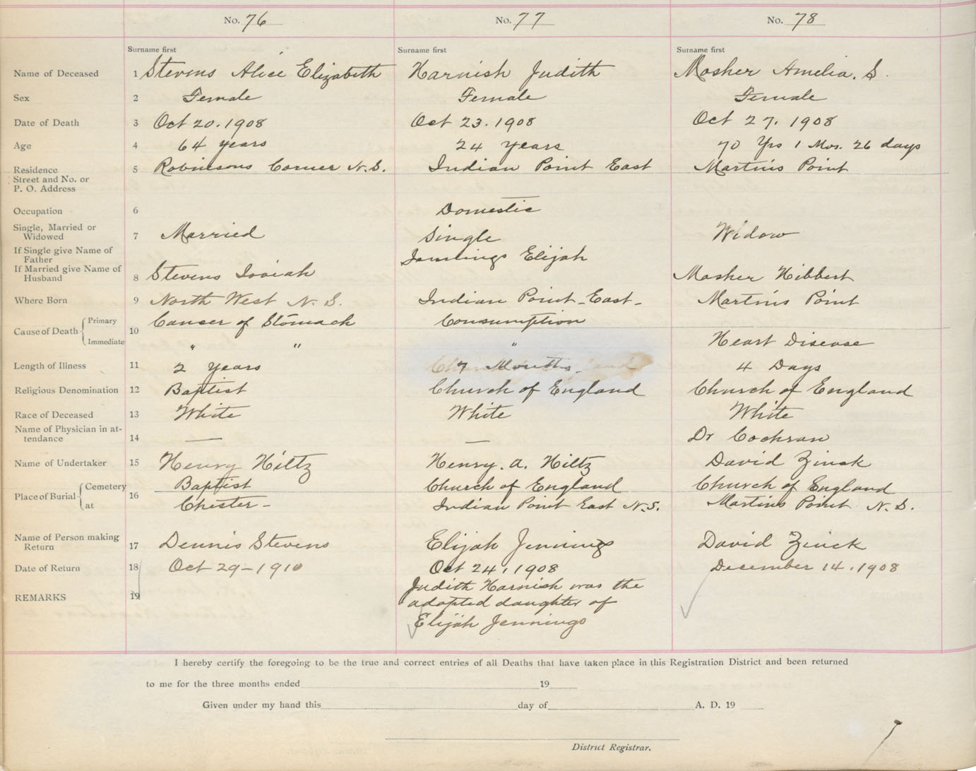 Death Registration: Year: 1908 book: 13 page: 13 number: 76