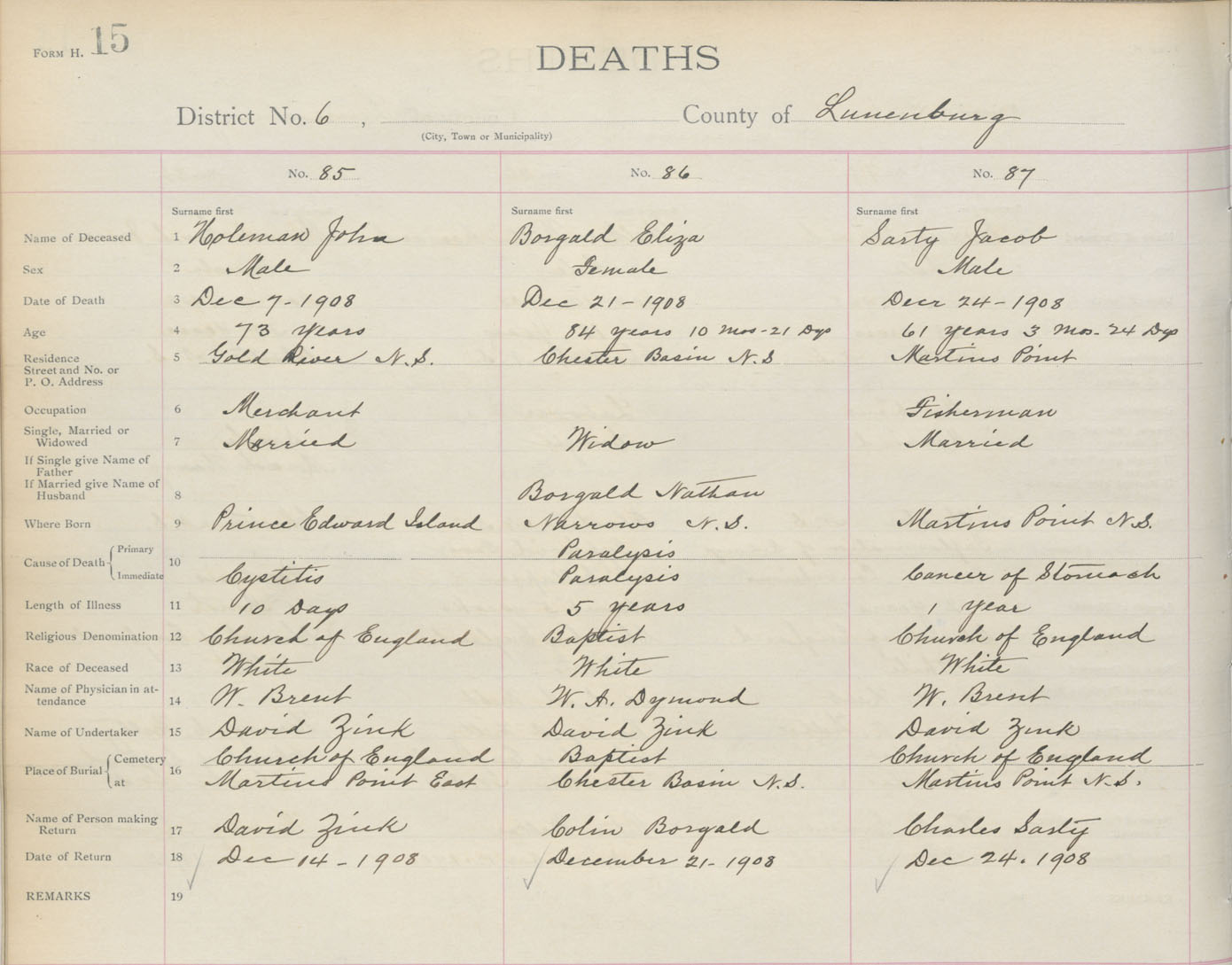 Death Registration: Year: 1908 book: 13 page: 15 number: 85