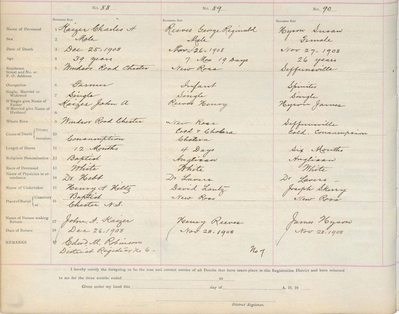 Death Registration: Year: 1908 book: 13 page: 15 number: 88