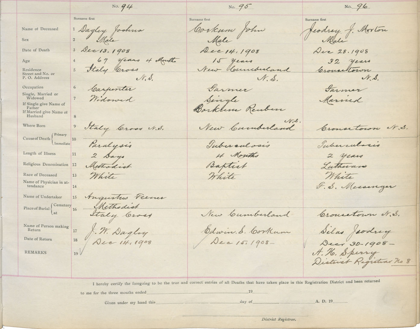 Death Registration: Year: 1908 book: 13 page: 16 number: 94