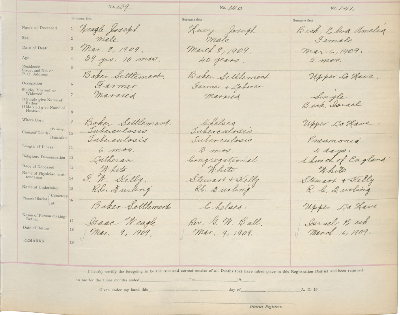 Death Registration: Year: 1909 book: 13 page: 24 number: 139