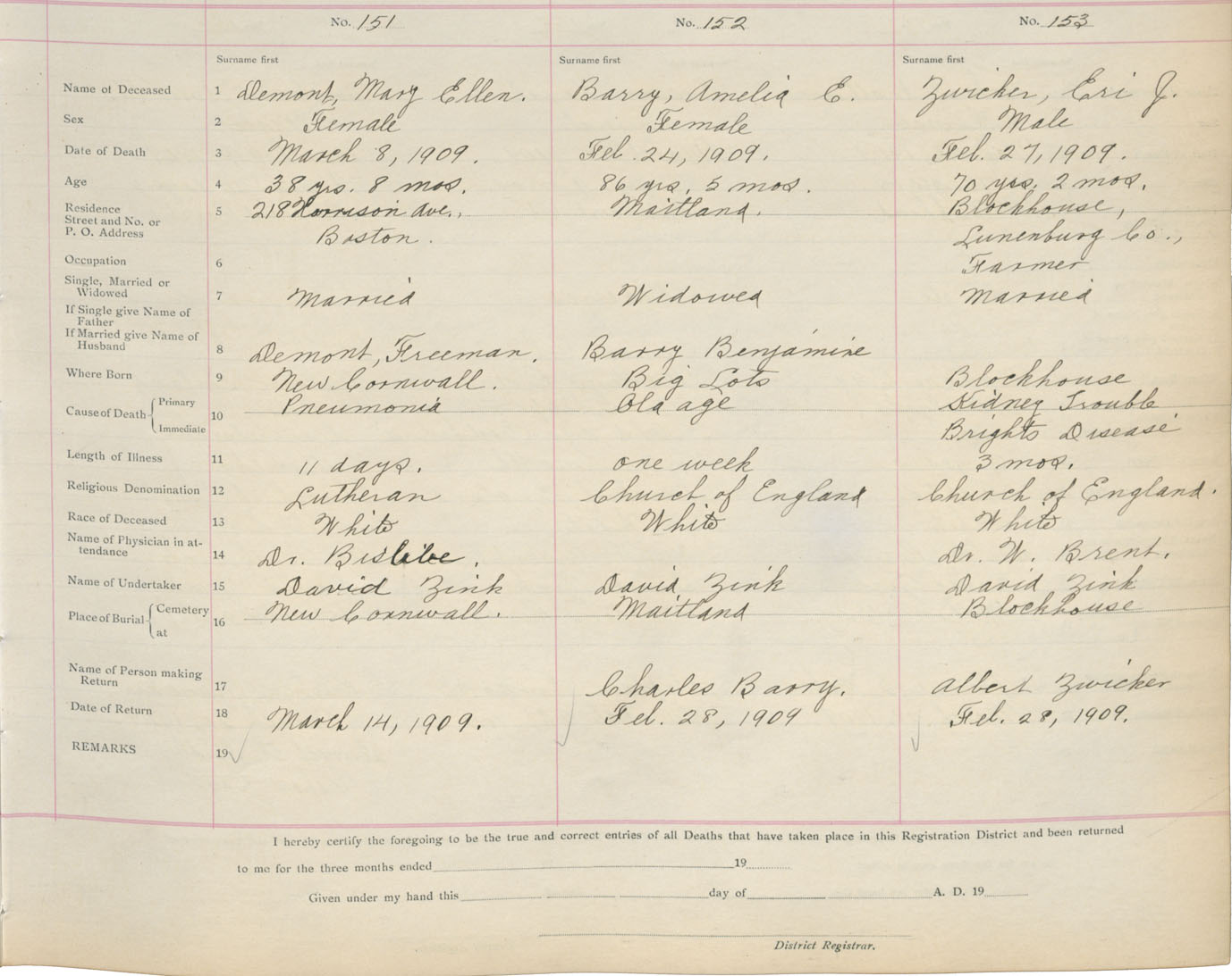 Death Registration: Year: 1909 book: 13 page: 26 number: 151