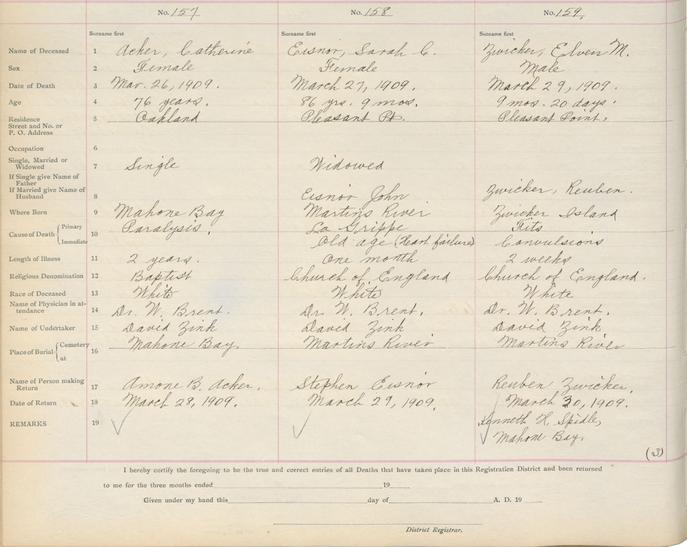 Death Registration: Year: 1909 book: 13 page: 27 number: 157