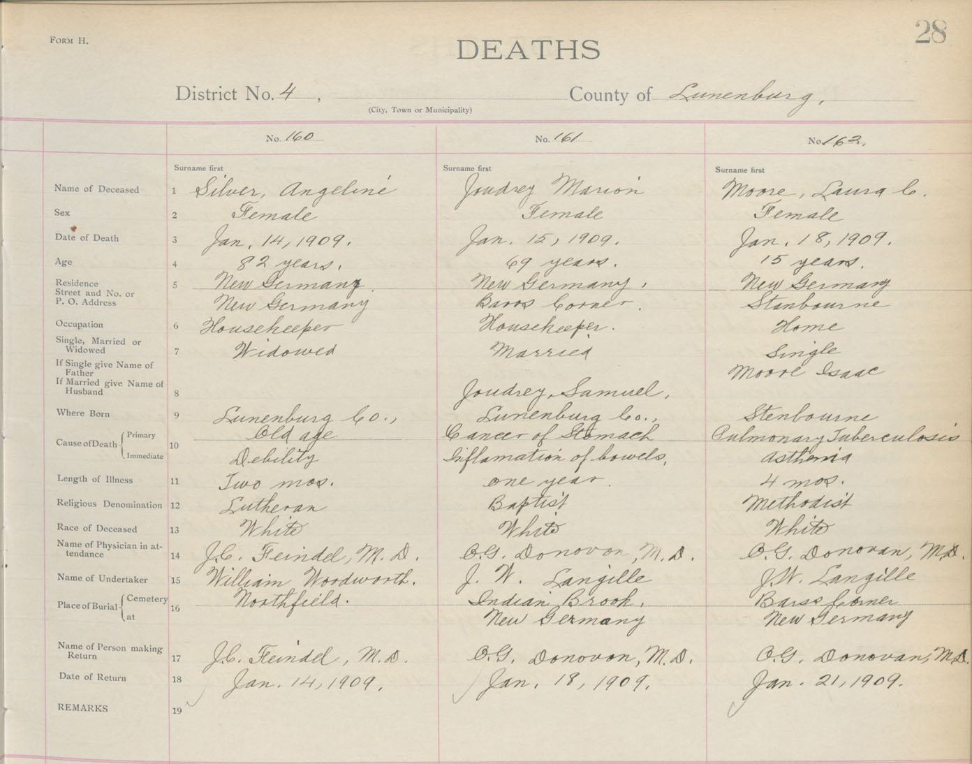 Death Registration: Year: 1909 book: 13 page: 28 number: 160