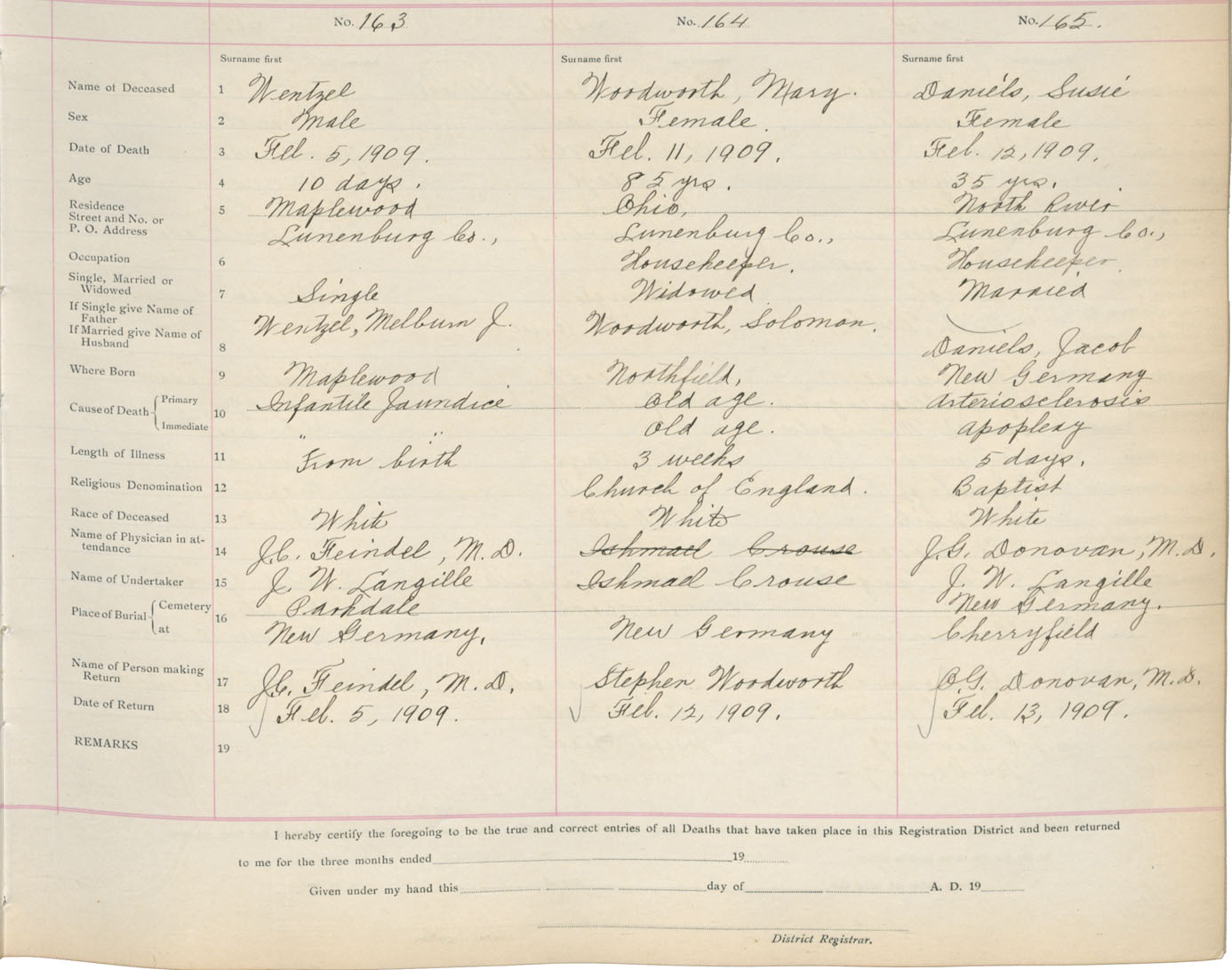 Death Registration: Year: 1909 book: 13 page: 28 number: 163