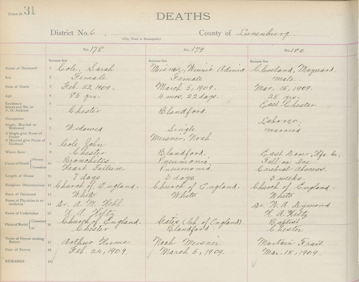 Death Registration: Year: 1909 book: 13 page: 31 number: 178
