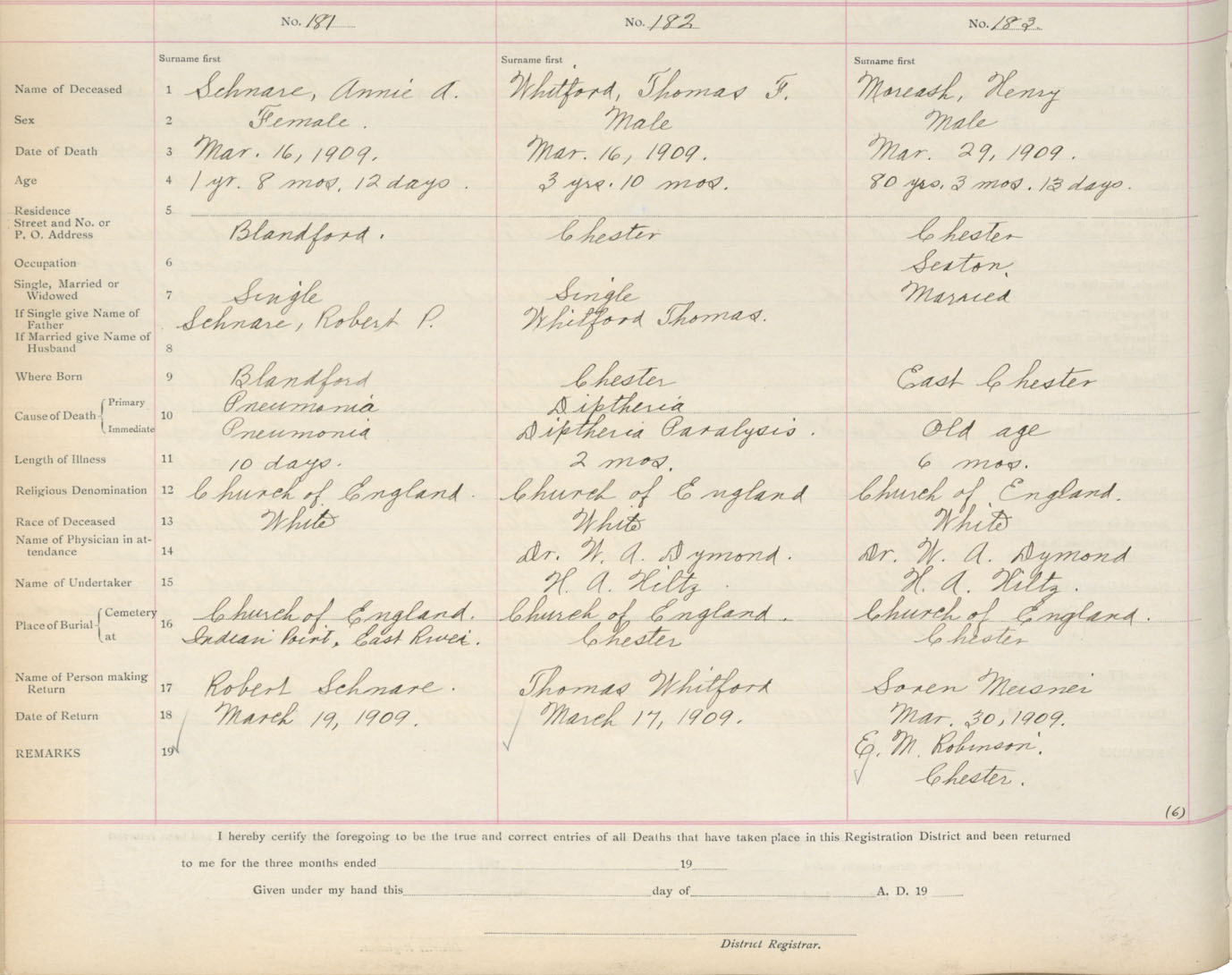 Death Registration: Year: 1909 book: 13 page: 31 number: 181