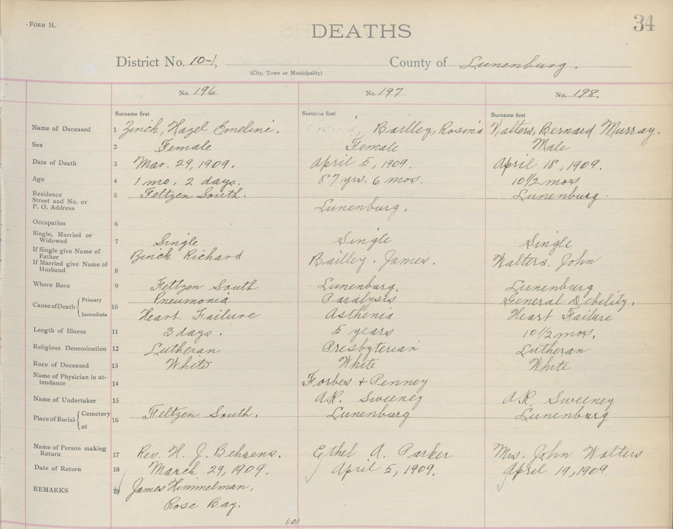 Death Registration: Year: 1909 book: 13 page: 34 number: 196
