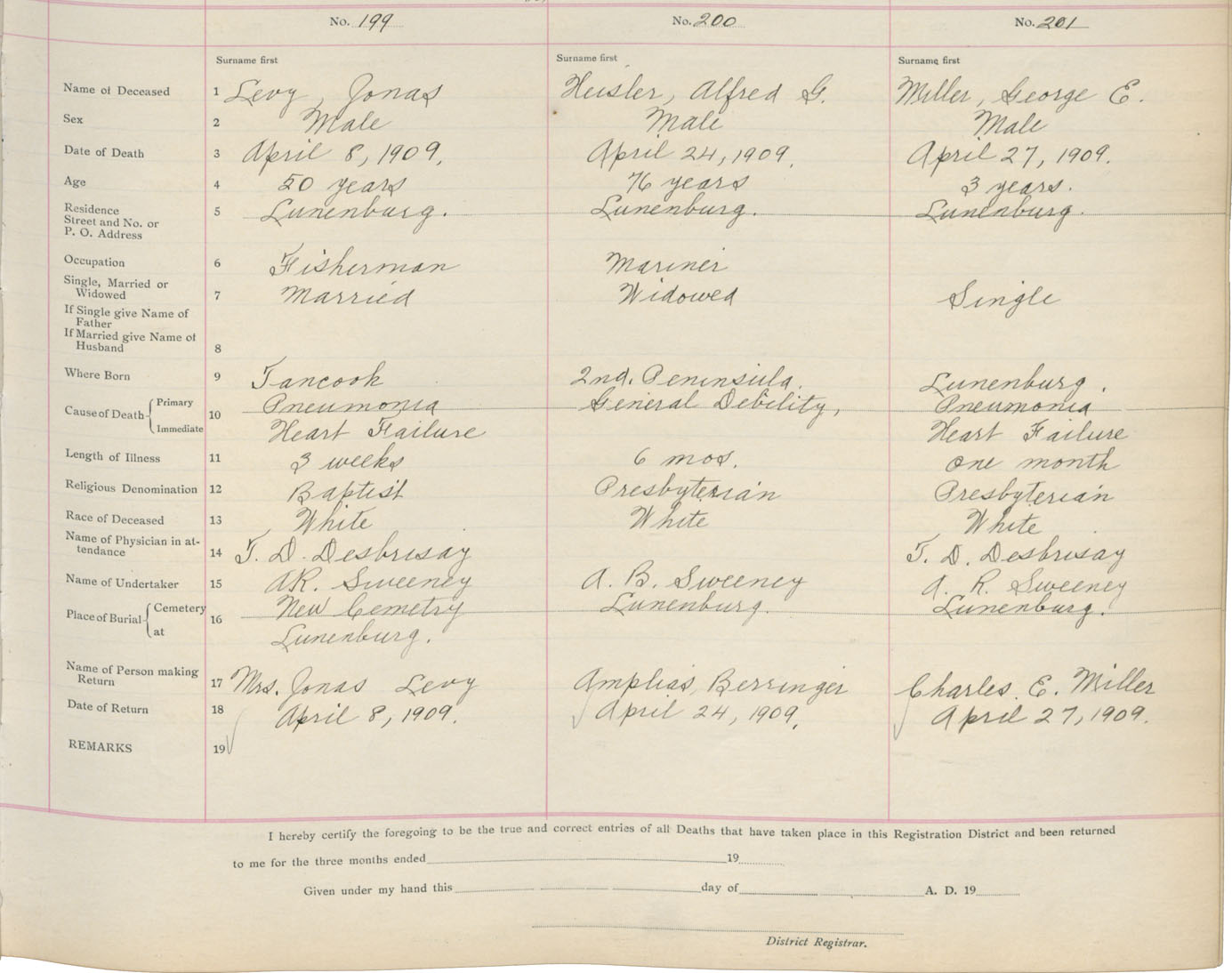 Death Registration: Year: 1909 book: 13 page: 34 number: 199