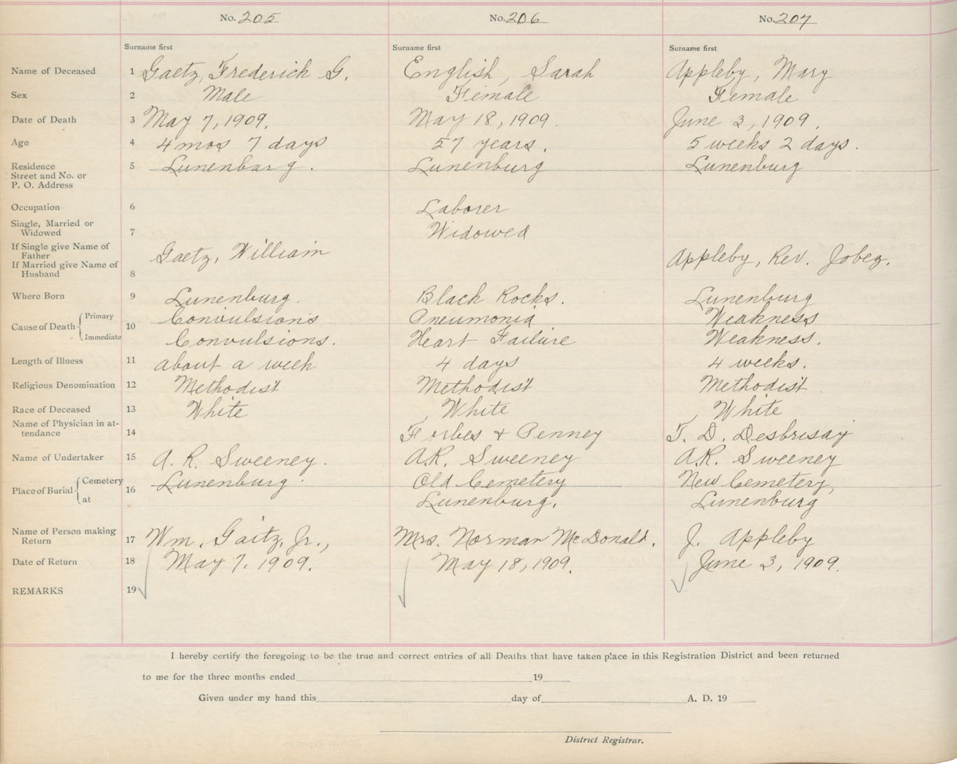 Death Registration: Year: 1909 book: 13 page: 35 number: 205