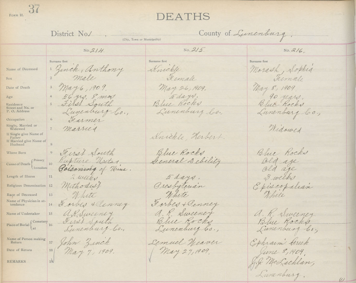 Death Registration: Year: 1909 book: 13 page: 37 number: 214