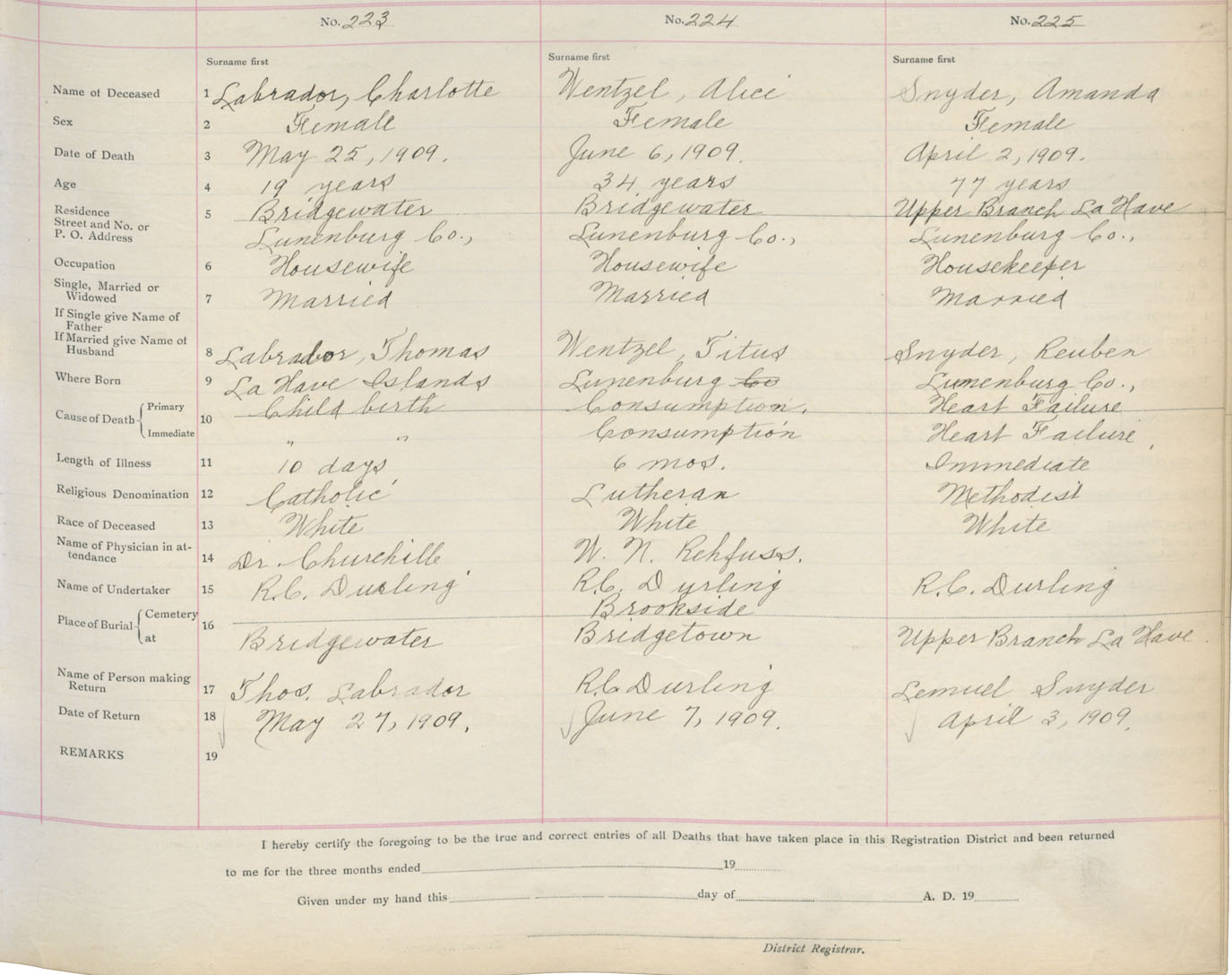 Death Registration: Year: 1909 book: 13 page: 38 number: 223