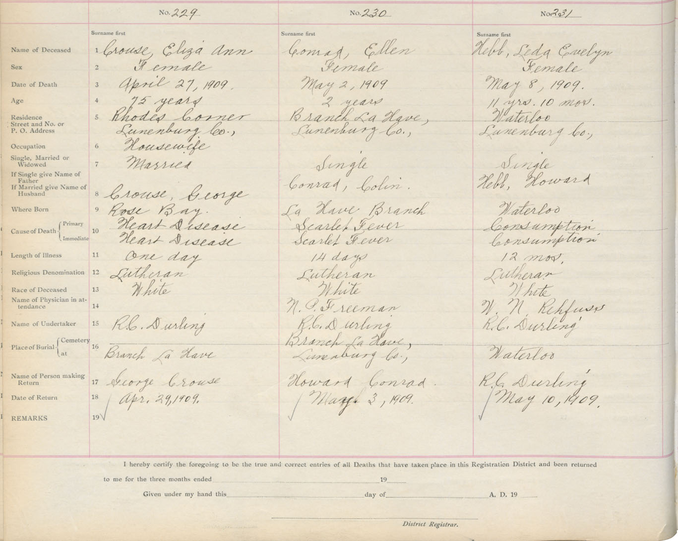 Death Registration: Year: 1909 book: 13 page: 39 number: 229