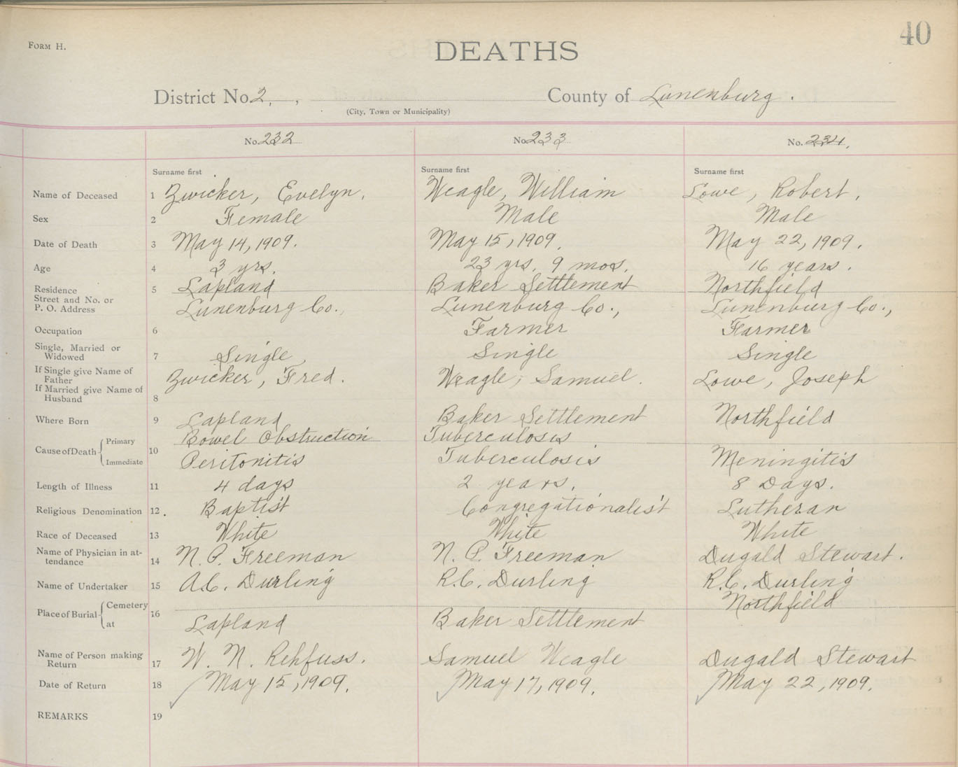 Death Registration: Year: 1909 book: 13 page: 40 number: 232