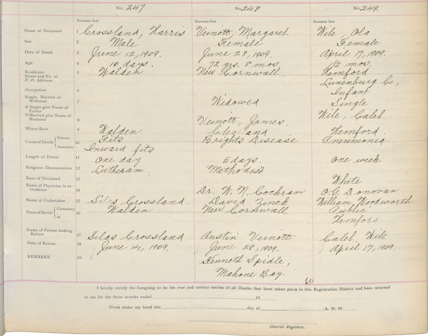 Death Registration: Year: 1909 book: 13 page: 42 number: 247