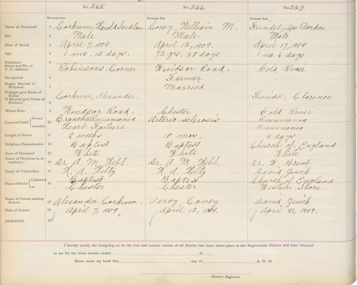 Death Registration: Year: 1909 book: 13 page: 45 number: 265
