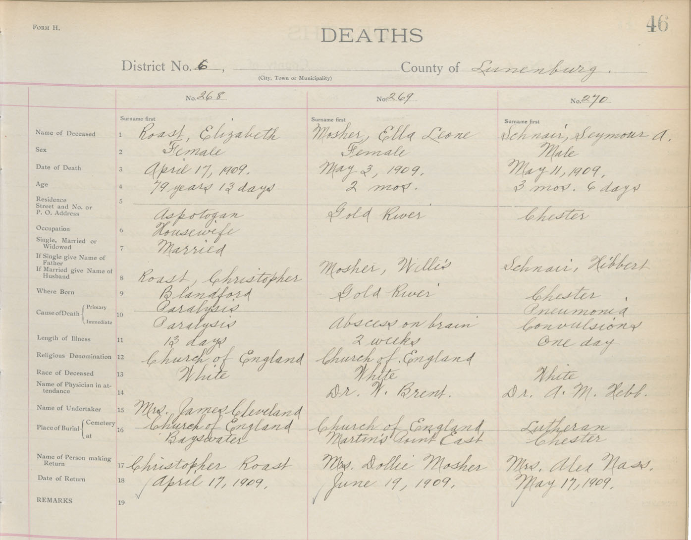 Death Registration: Year: 1909 book: 13 page: 46 number: 268