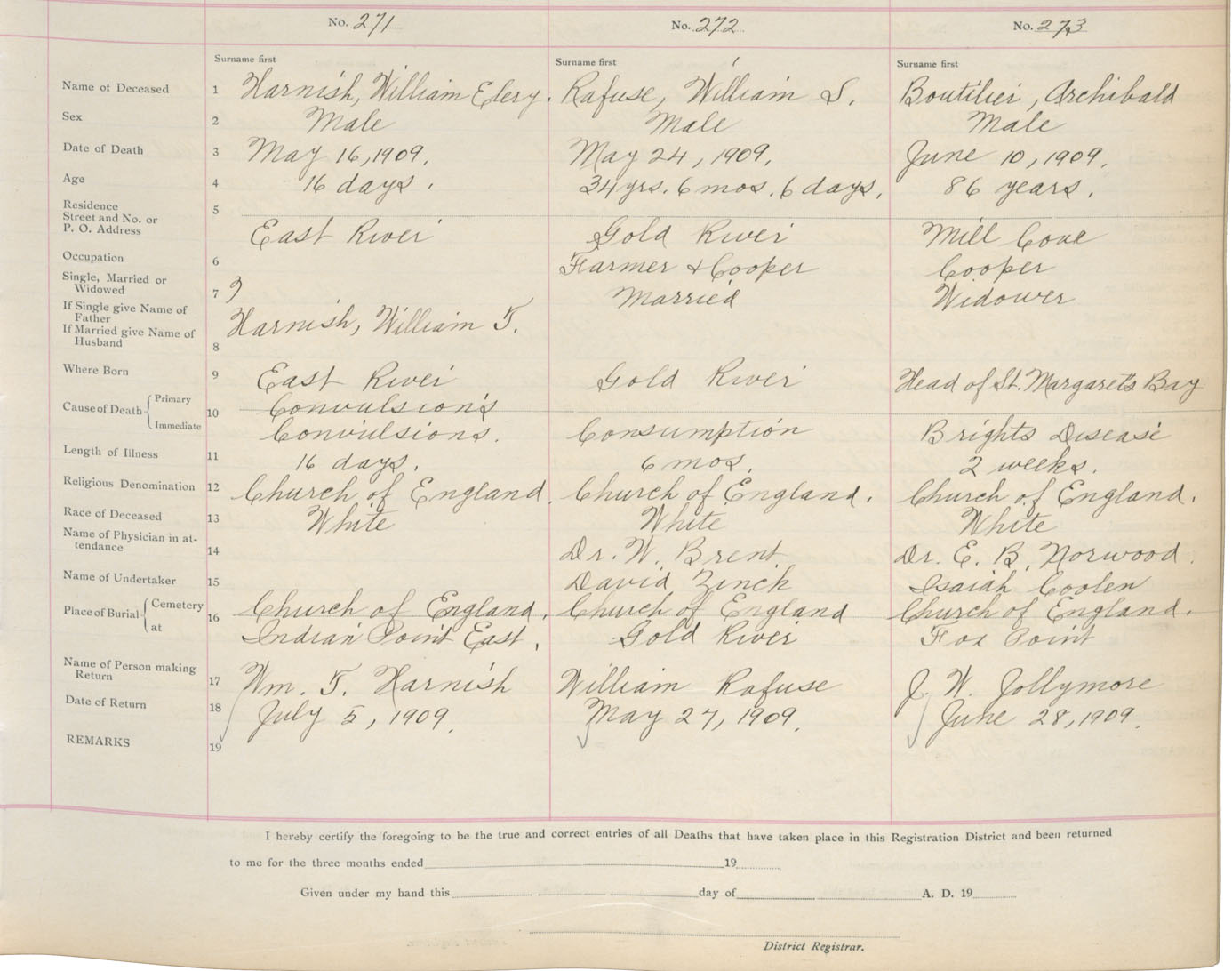 Death Registration: Year: 1909 book: 13 page: 46 number: 271