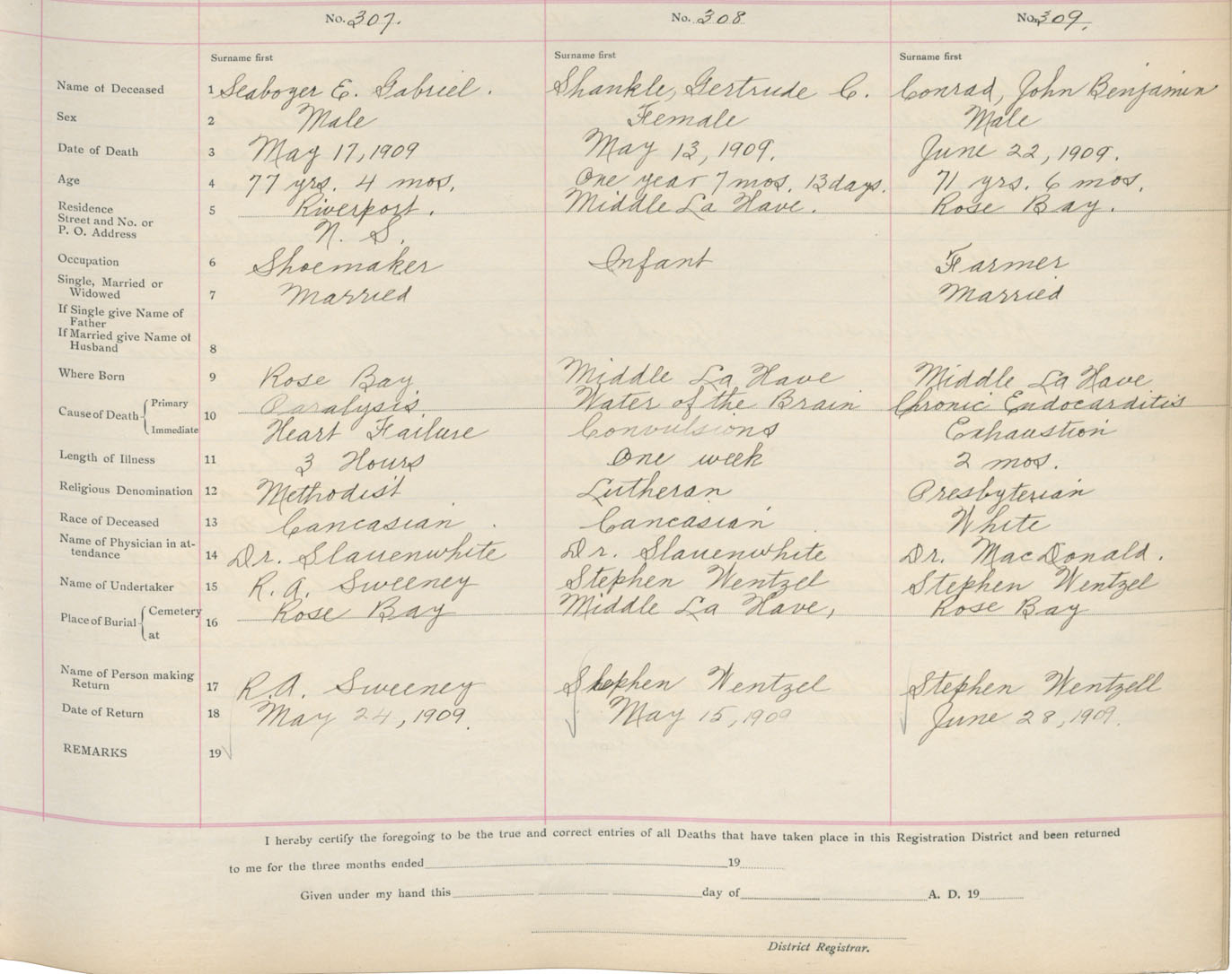 Death Registration: Year: 1909 book: 13 page: 52 number: 307