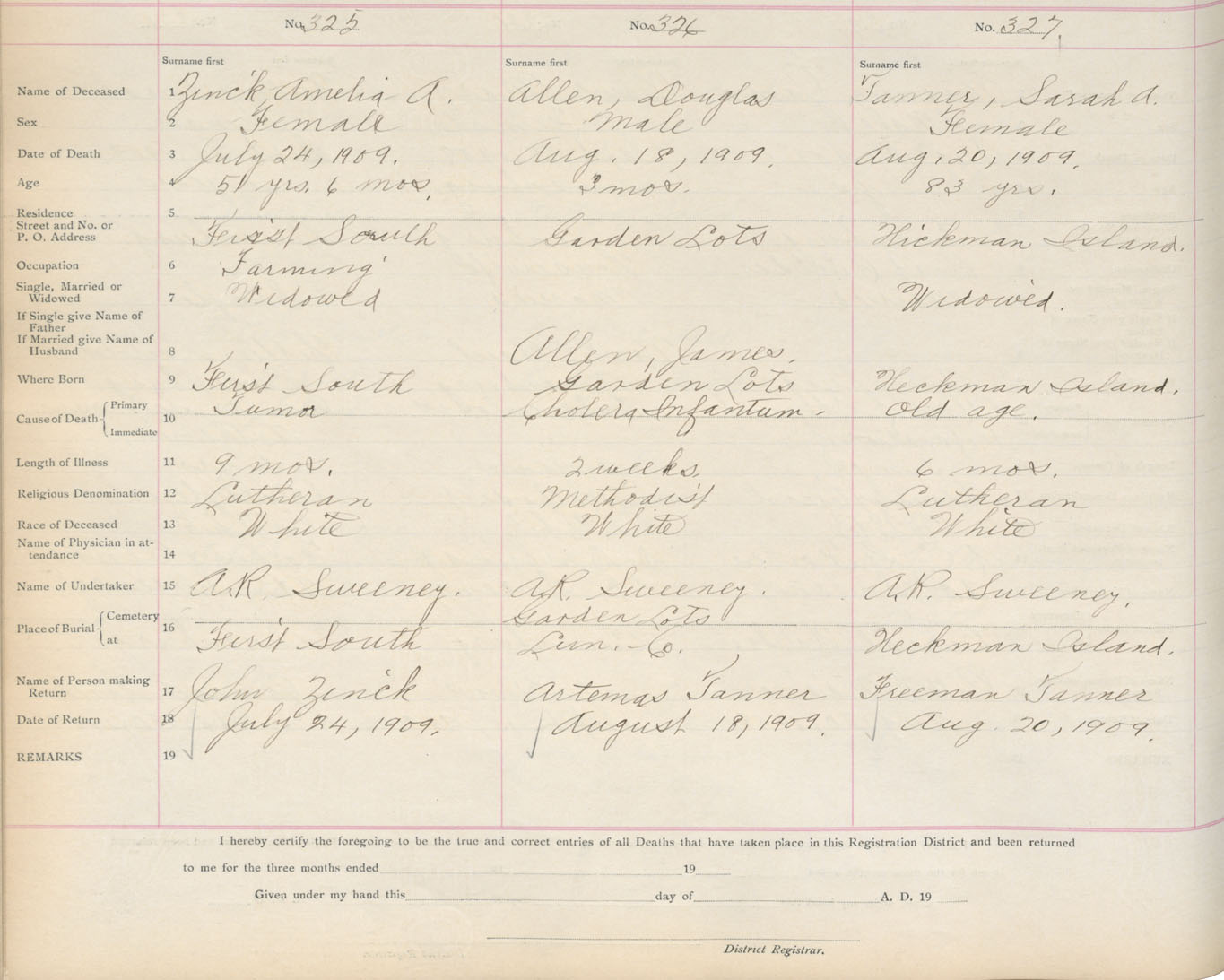 Death Registration: Year: 1909 book: 13 page: 55 number: 325
