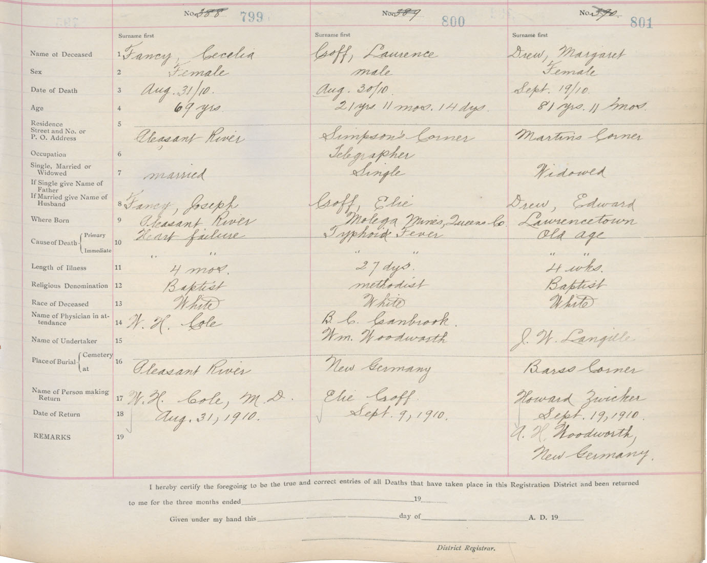 Death Registration: Year: 1910 book: 13 page: 134 number: 801