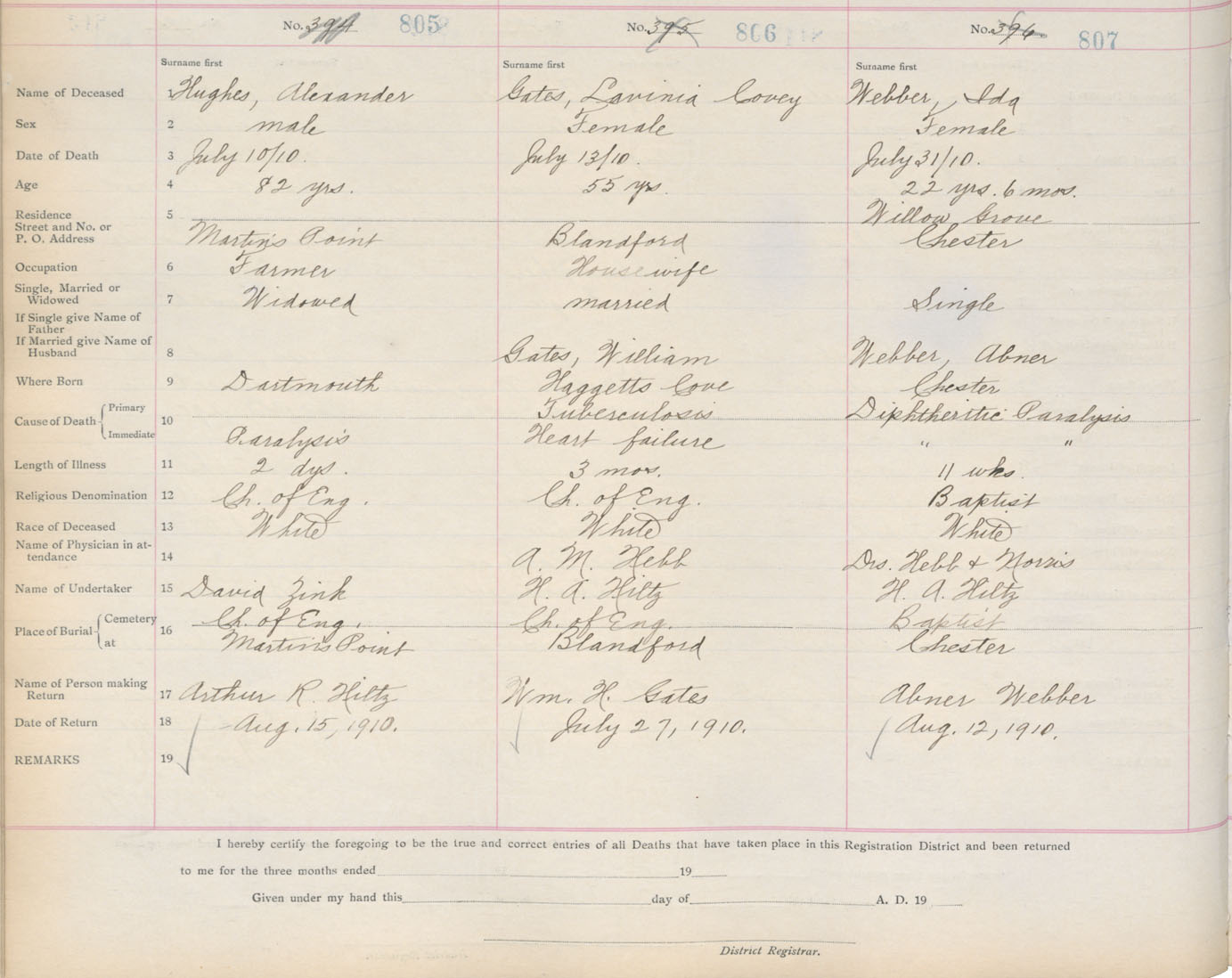 Death Registration: Year: 1910 book: 13 page: 135 number: 807