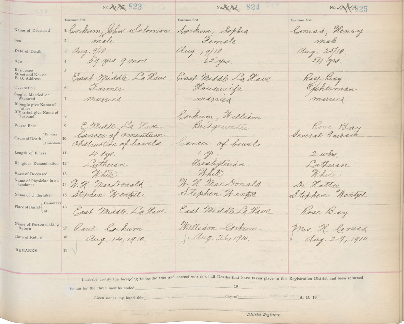 Death Registration: Year: 1910 book: 13 page: 138 number: 825