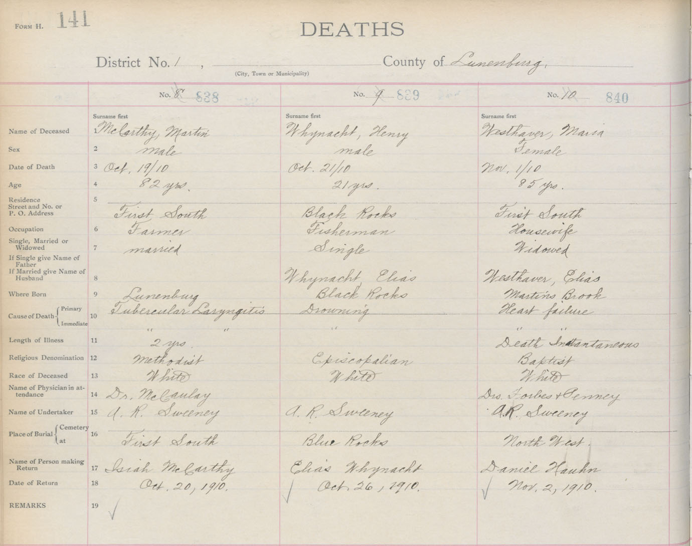 Death Registration: Year: 1910 book: 13 page: 141 number: 840