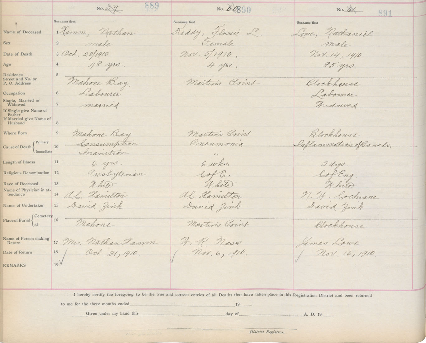 Death Registration: Year: 1910 book: 13 page: 149 number: 891