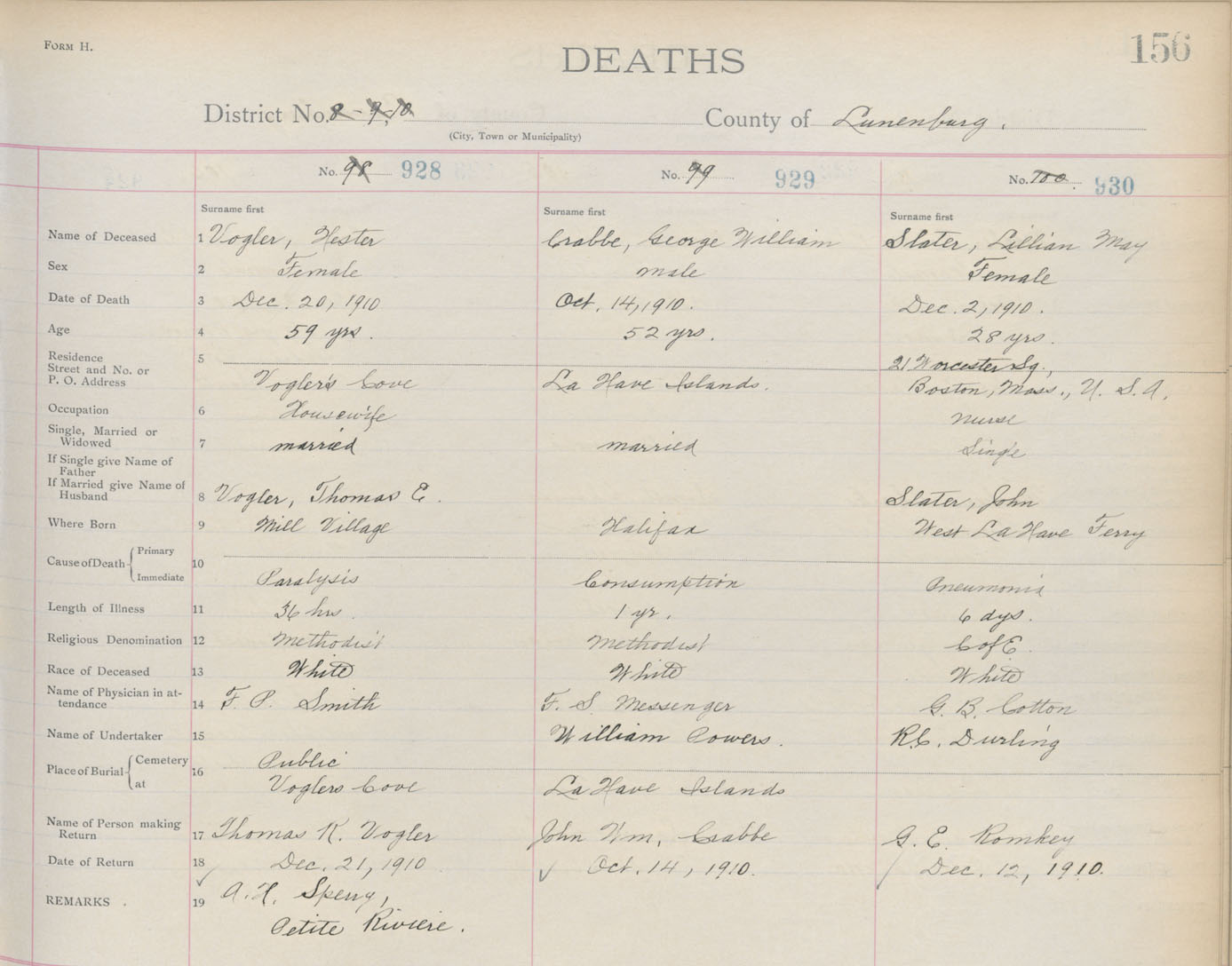 Death Registration: Year: 1910 book: 13 page: 156 number: 930