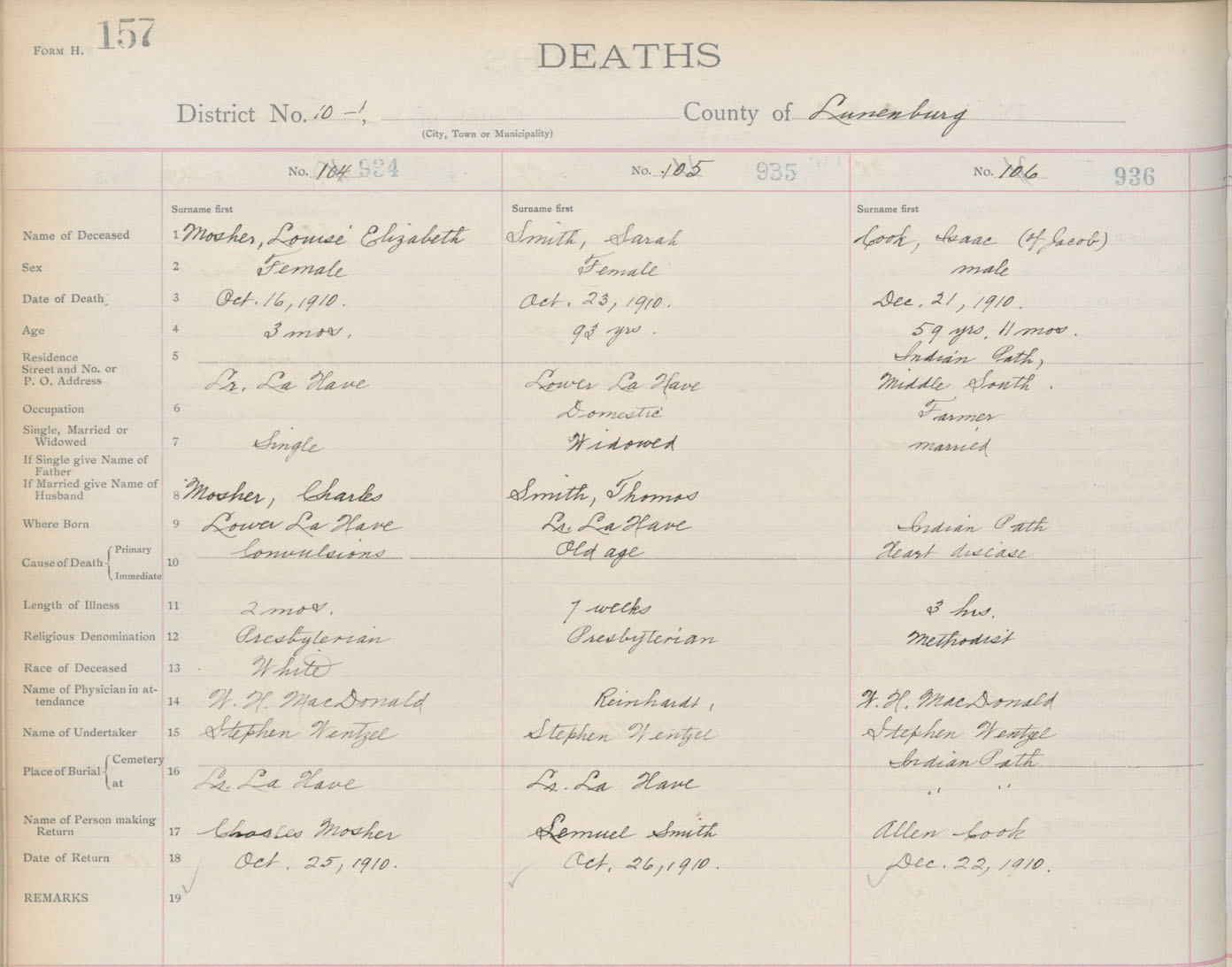 Death Registration: Year: 1910 book: 13 page: 157 number: 936