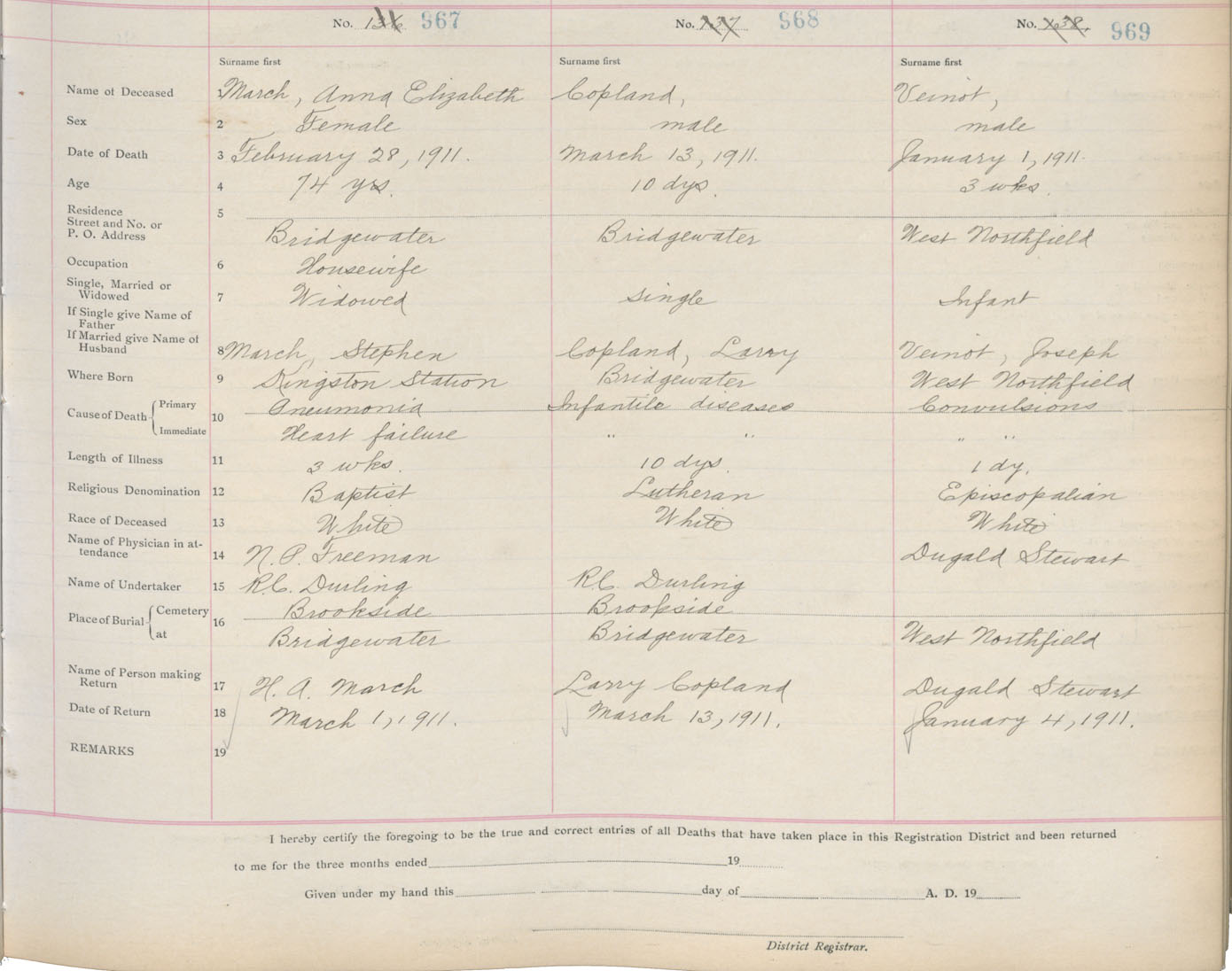 Death Registration: Year: 1911 book: 13 page: 162 number: 969
