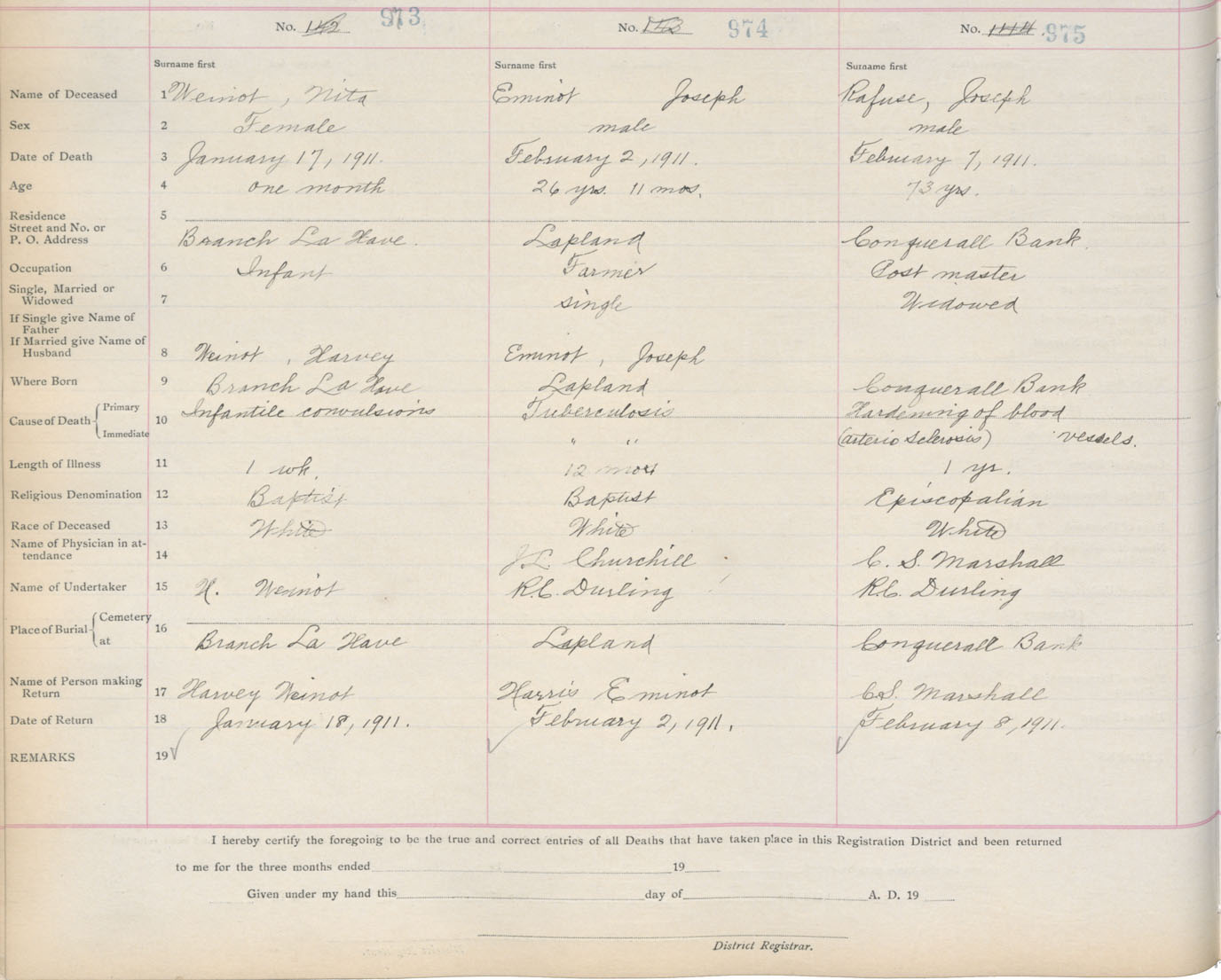 Death Registration: Year: 1911 book: 13 page: 163 number: 975